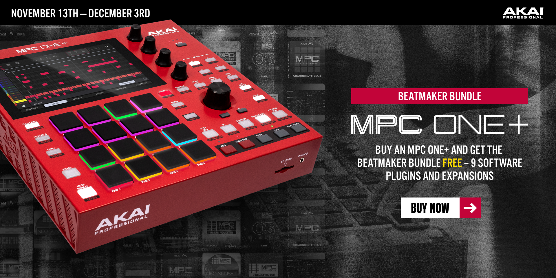 MPC One+は、ネクストステップを求めるプロデューサーやビートメーカーのために登場しました。MPC BeatsからMPC One+にアップグレードすると、古いプロジェクトもMPC One+でシームレスにロードできます。MPK miniやその他のクラスコンプライアント対応デバイスを接続すれば、Hype、Mellotron、Odysseyといった人気のMPCプラグイン・インストゥルメントのパワフルなキーボードコントロールが可能になります。限定期間中に新しく購入したMPC One+をオンライン登録すると、MPC StoreからMPCプラグイン・インストゥルメントを無料でダウンロードできるバウチャーを受け取ることができます。
