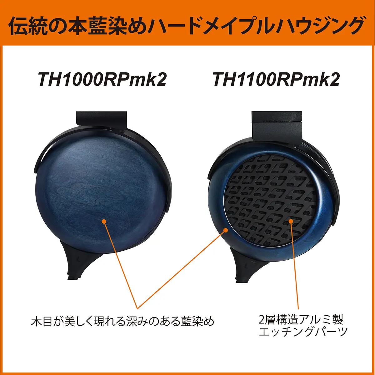 本製品は、フォステクス独自開発のプレミアムグレードの全面駆動型平面振動板RPドライバーを、ドライバー内部の空気のダンピングコントロールを中心に振動板の動きを最適化し卓越した再生能力に磨きを掛け、さらにはリケーブルに対応しやすいコネクタを採用し国内工場にて1台1台丁寧に組み上げた、フラッグシップRPヘッドホンのmk2です。阿波藍の熟練職人の手で染め上げたハウジングの美しい木目の藍の色彩と風合いに、プレミアムRPドライバーの圧倒的な解像度による忠実な表現力が相まって、伝統工芸と音響技術が共演する極上のオーディオ体験を提供します。