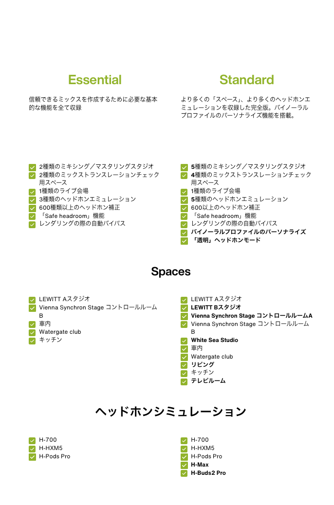 Space Replicatorは、あらゆる再生環境をシミュレートし、まるでその場で聴いているような感覚をヘッドホンで実現。プロ仕様のミックスにも、トランスレーションチェックにも最適です。再現できるスペースはプロ仕様のミキシングルームやマスタリングルーム、クラブ、カーオーディにキッチンなど様々。ヘッドホンシミュレーションは「透明化」を含む6種を収録。600種類以上のヘッドホンに対応しているので、愛用のモデルですぐにお使いいただけます。