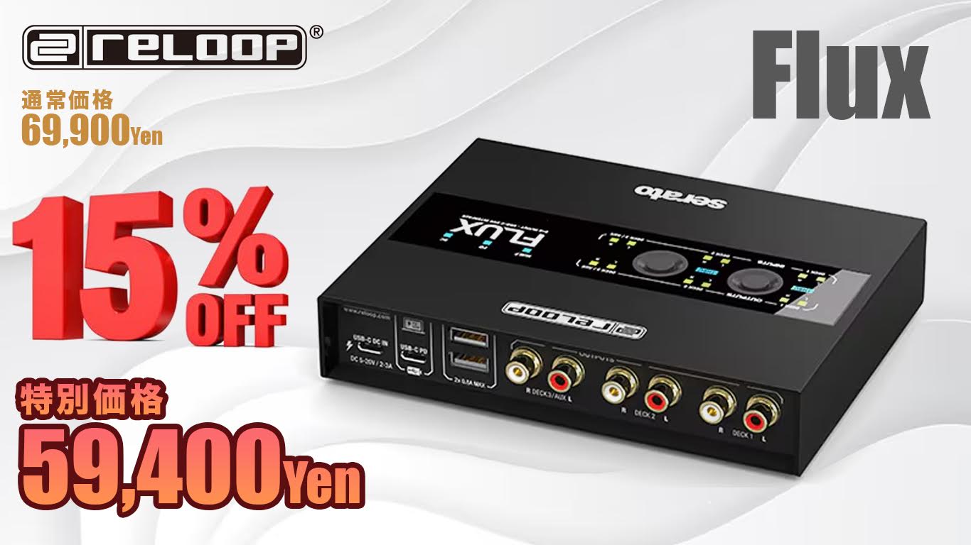 Reloop Flux は、Serato DJ Pro をターンテーブルや CDJ、その他のメディアプレーヤーで使用するための次世代 USB-Cインターフェー