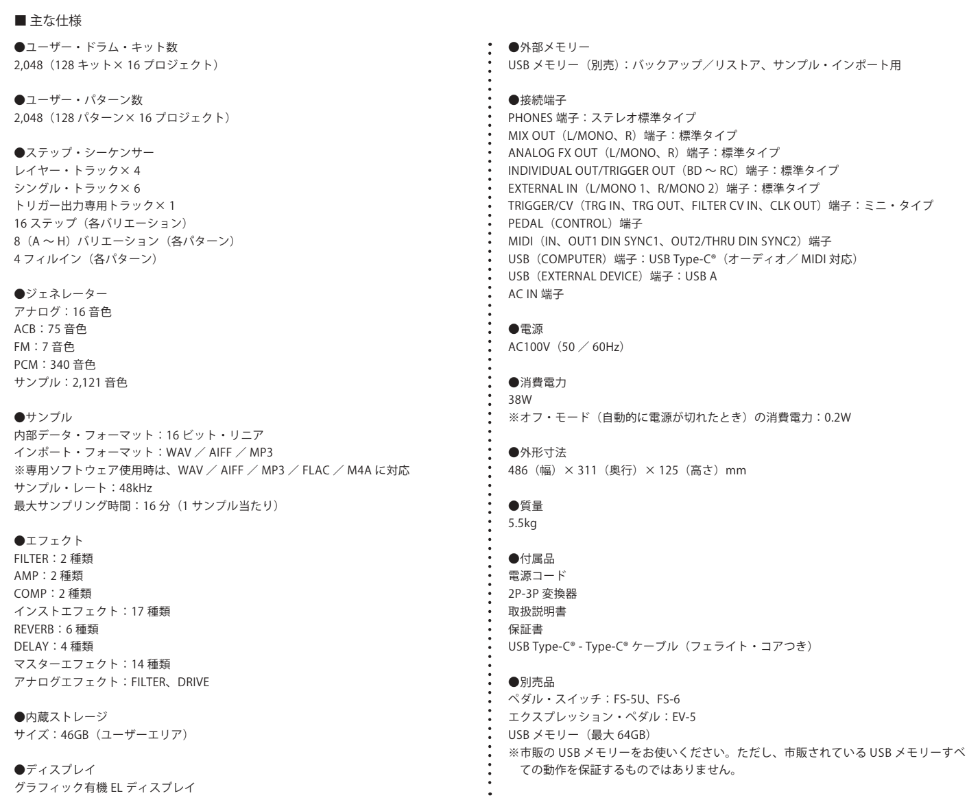 直感的な操作でサウンドを洗練、変化させる豊富なエフェクト を搭載。ローランドのクラシックな設計に触発されて新開発した アナログ・フィルターに加えて、サチュレーションによってパン チを与えるアナログ・ドライブも装備。トラックごとのリバーブ /ディレイ・センドでサウンドを補強したのち、定番のクラッシャー、フィルター、アイソレーター、サチュレーター、フラン ジャーにスキャッターなど、さまざま選べるマスター・エフェク トでさらなる彩りや動きを加えられます。