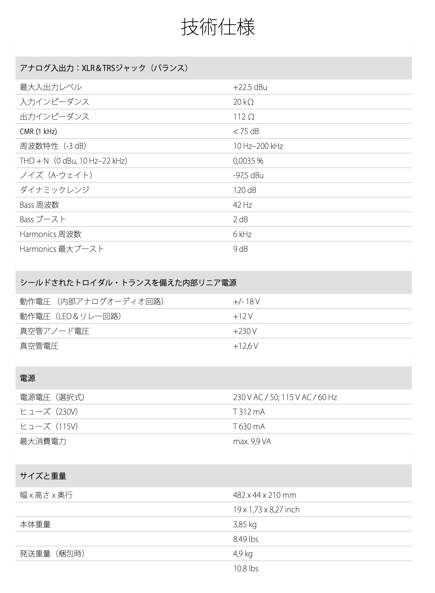 +/- 18Vの内部オーディオ電圧により、素晴らしいサウンドを保証します。
