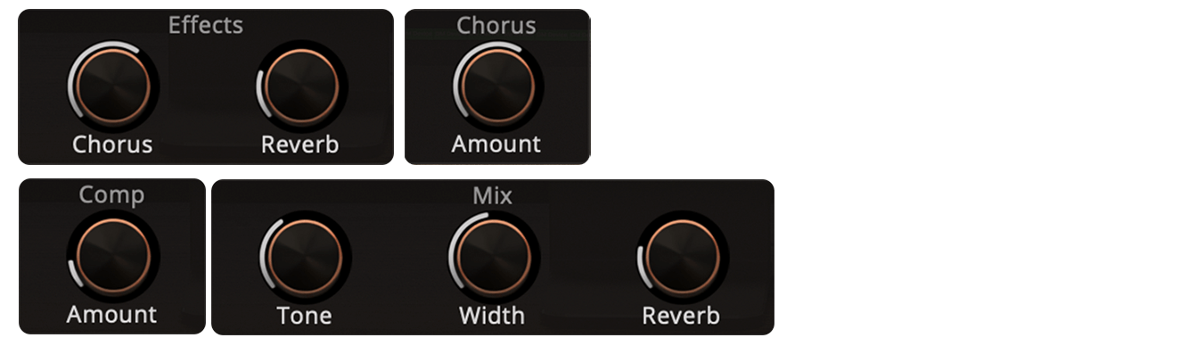 収録されているプリセットは、ナチュラルなサウンドから、サチュレーションやディストーションを効かせた広がりのある音までをカバーしています。さらに、一部のプリセットにはシンセのテクスチャをレイヤーされており、多様なサウンドを楽しむことができます。